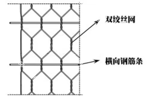 加筋石籠網(wǎng)箱是在網(wǎng)箱后連加筋重型六角網(wǎng),是在網(wǎng)箱后面連接網(wǎng)片,網(wǎng)片伸入土體中作為網(wǎng)箱的加筋網(wǎng),利用土體和網(wǎng)片的摩擦來(lái)增加巨大的抗滑力,具有良好的環(huán)境親和性。